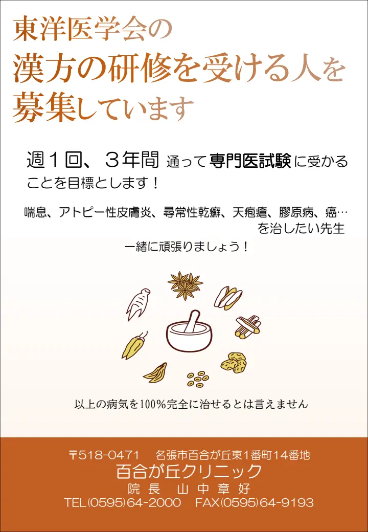 漢方専門医の研修を受けたい方 募集